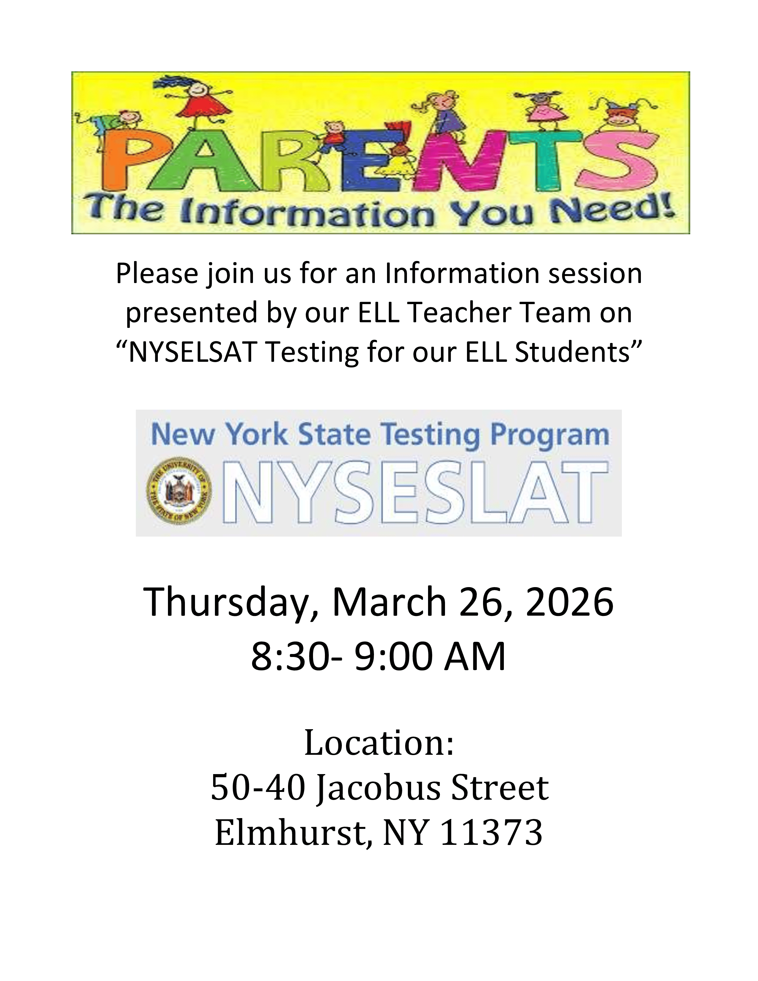 NYSELSAT Testing for our ELL Students Presentation Attached Files 2026 NYSESLAT Parent Presentation (1).pdf